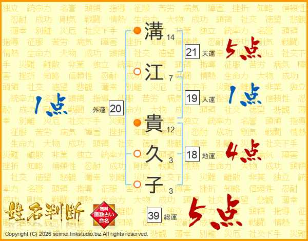 溝江貴久子さんの総運は39画の5点!