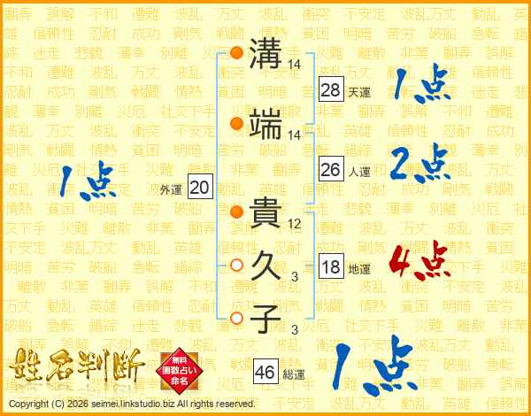 溝端貴久子さんの総運は46画の1点!