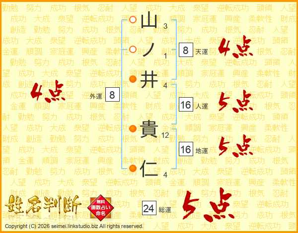 山ノ井貴仁さんの総運は24画の5点!