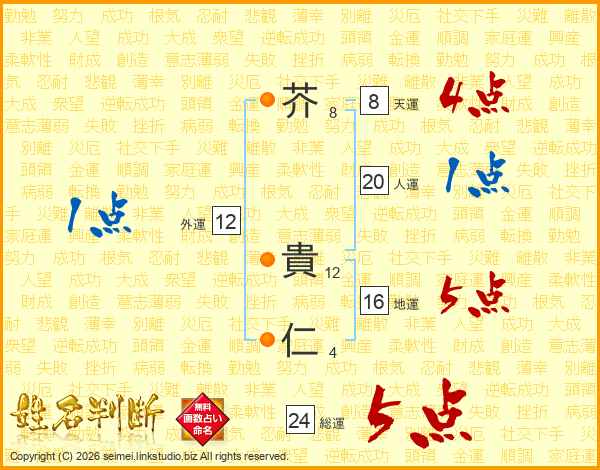 芥貴仁さんの人運は20画の1点!
