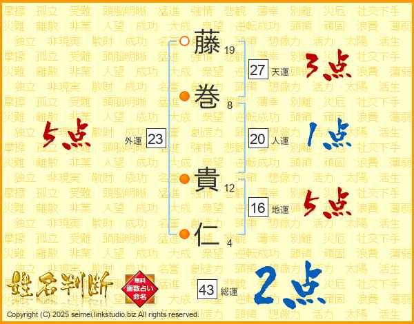 藤巻貴仁さんの天運は27画の3点!