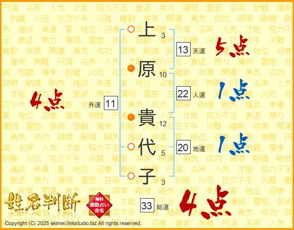 上原貴代子さんの総運は33画の4点!