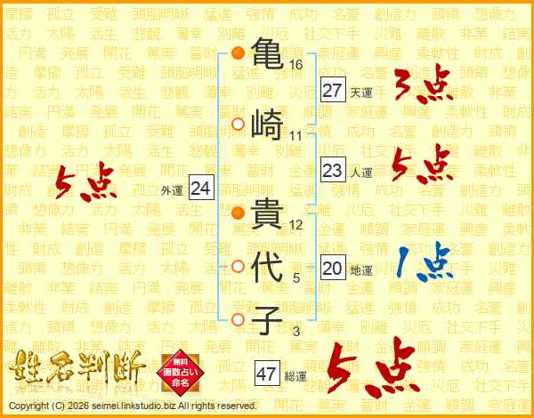 亀崎貴代子さんの総運は47画の5点!