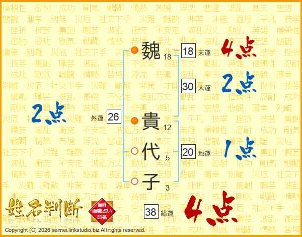魏貴代子さんの総運は38画の4点!