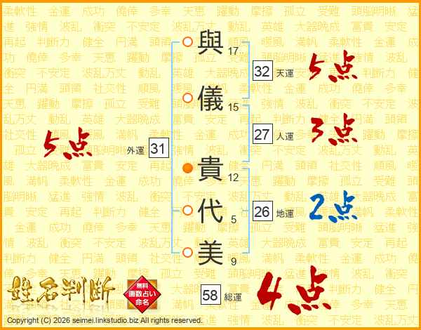 與儀貴代美さんの総運は58画の4点!