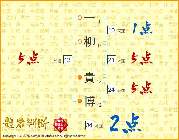 一柳貴博さんの総運は34画の2点!