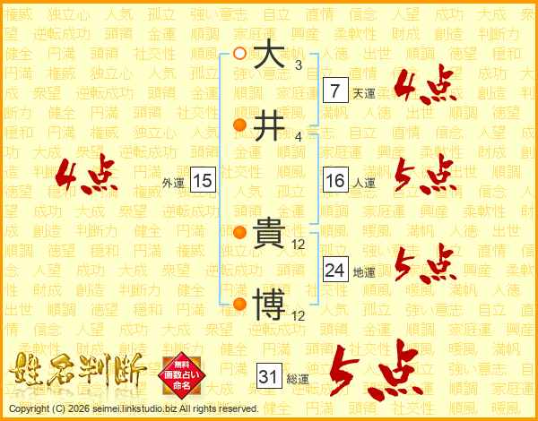 大(3画)井(4画) 貴(12画)博(12画)