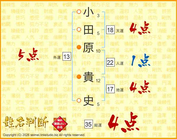 小田原貴史さんの総運は35画の4点!