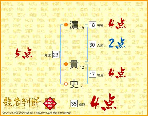 濵貴史さんの総運は35画の4点!