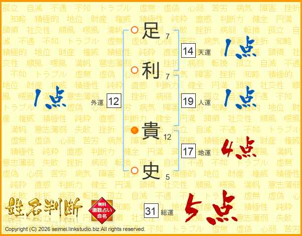 足利貴史さんの総運は31画の5点!