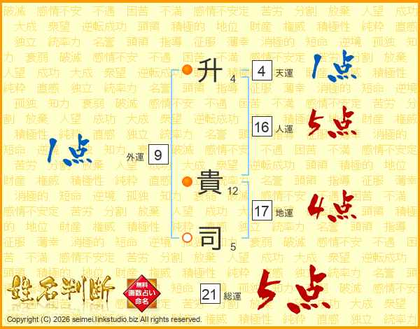 升(4画) 貴(12画)司(5画)