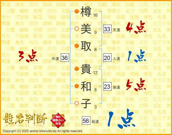 樽美取貴和子さんの天運は33画の4点!