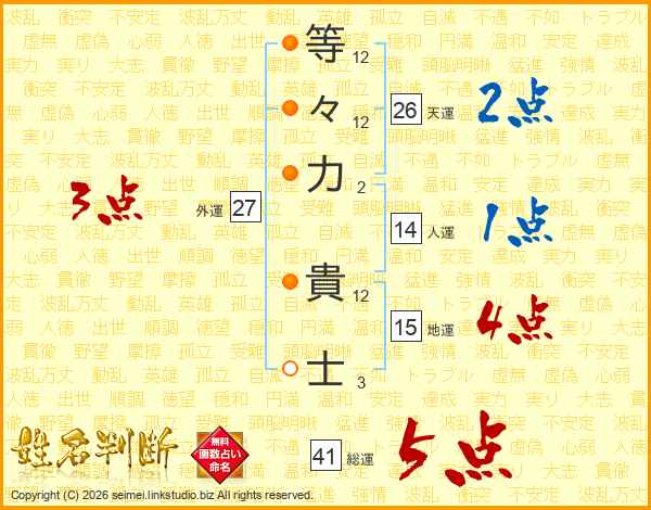 等々力貴士さんの総運は41画の5点!