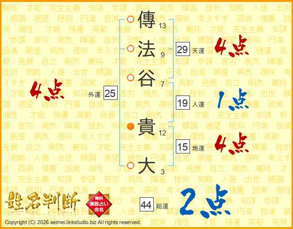 傳法谷貴大さんの天運は29画の4点!
