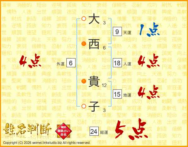 大西貴子さんの総運は24画の5点!