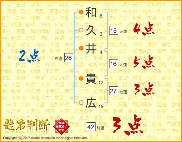 和(8画)久(3画)井(4画) 貴(12画)広(15画)