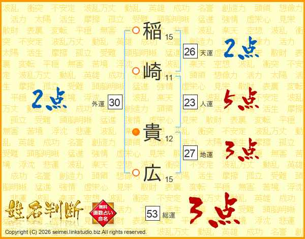 稲崎貴広さんの天運は26画の2点!