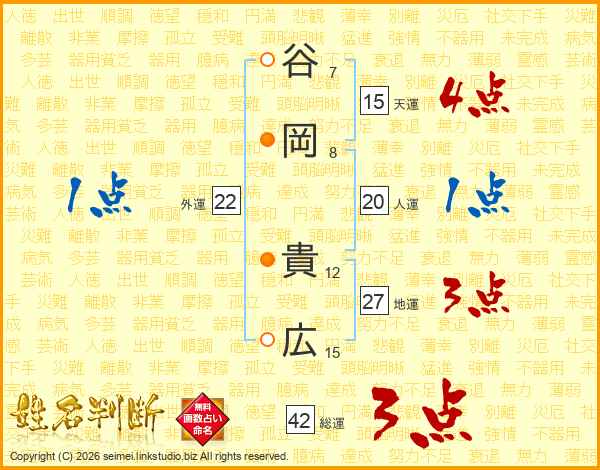 谷岡貴広さんの天運は15画の4点!