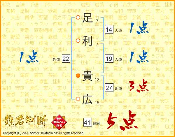 足利貴広さんの総運は41画の5点!