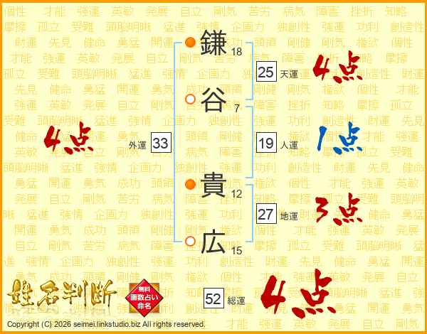 鎌谷貴広さんの天運は25画の4点!