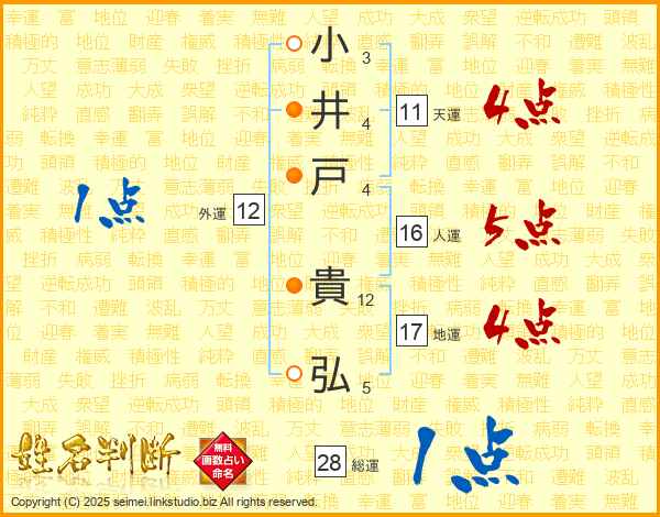 小(3画)井(4画)戸(4画) 貴(12画)弘(5画)