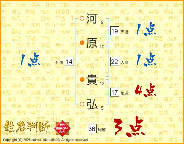 河原貴弘さんの総運は36画の3点!