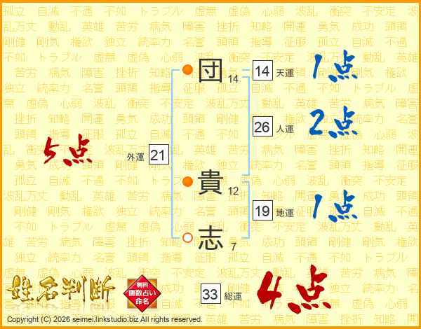 団(14画) 貴(12画)志(7画)