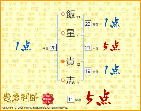 飯(13画)星(9画) 貴(12画)志(7画)