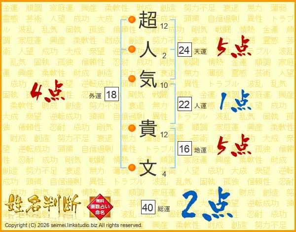 超人気貴文さんの総運は40画の2点!