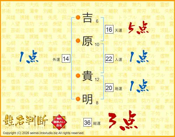 吉原貴明さんの人運は22画の1点!