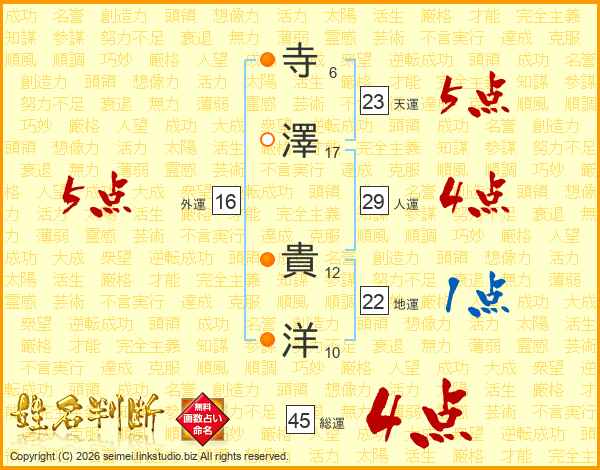 寺(6画)澤(17画) 貴(12画)洋(10画)