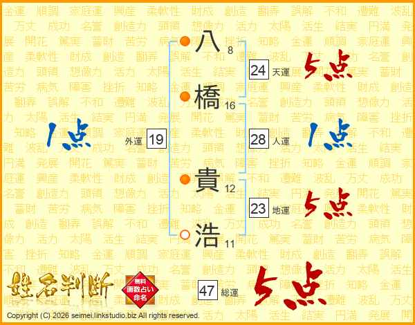 八橋貴浩さんの総運は47画の5点!