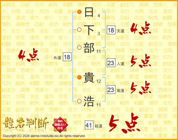 日下部貴浩さんの人運は23画の5点!