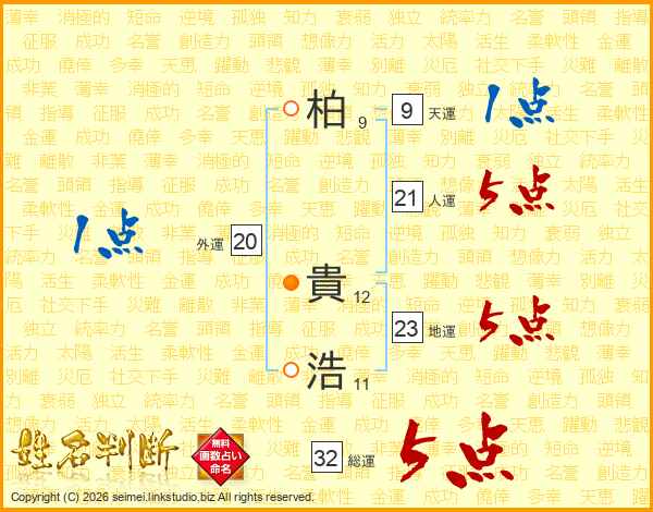 柏(9画) 貴(12画)浩(11画)