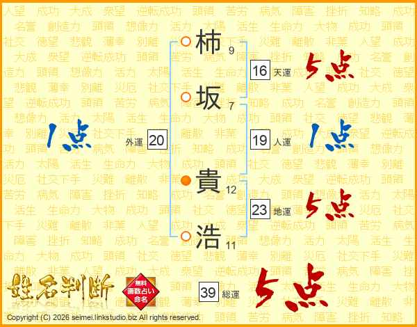 柿坂貴浩さんの総運は39画の5点!