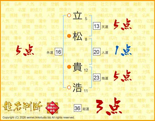 立松貴浩さんの総運は36画の3点!