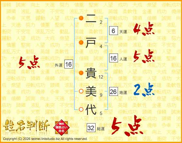 二戸貴美代さんの総運は32画の5点!