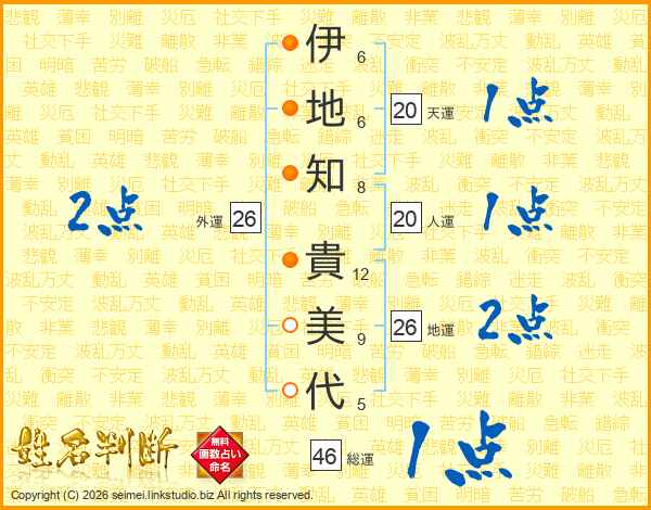 伊地知貴美代さんの総運は46画の1点!