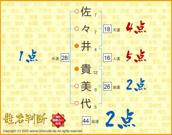 佐々井貴美代さんの総運は44画の2点!