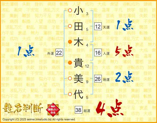 小田木貴美代さんの総運は38画の4点!
