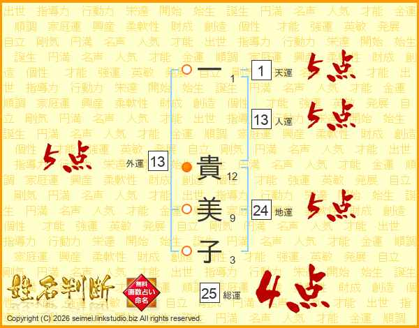 一貴美子さんの総運は25画の4点!