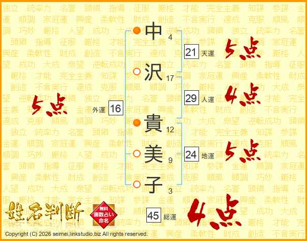 中沢貴美子さんの総運は45画の4点!