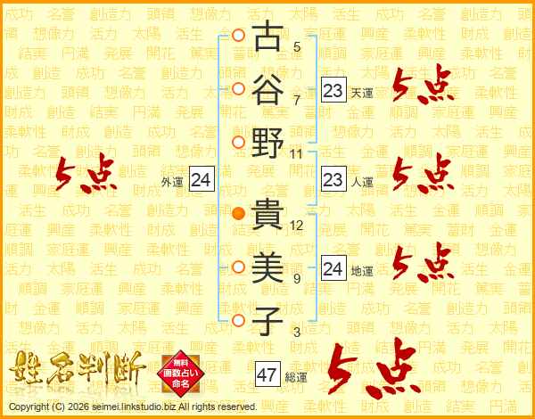 古谷野貴美子さんの総運は47画の5点!