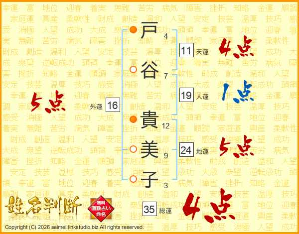 戸谷貴美子さんの外運は16画の5点!