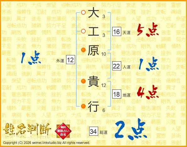 大工原貴行さんの人運は22画の1点!
