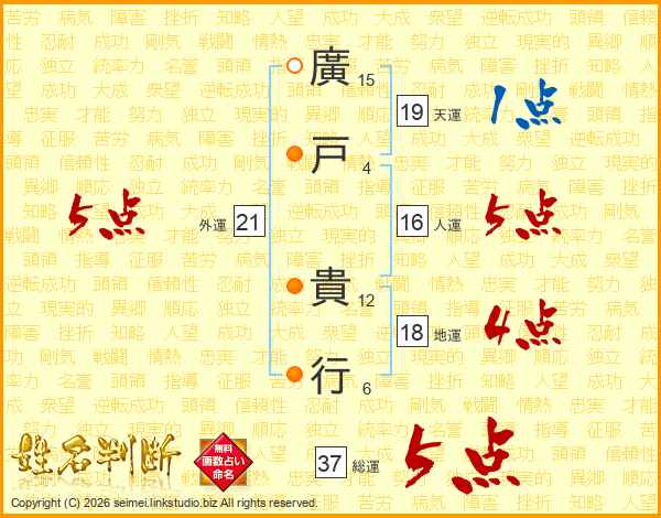 廣戸貴行さんの総運は37画の5点!