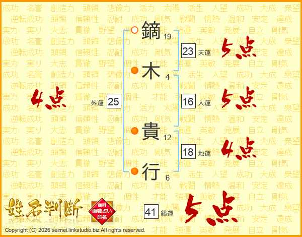 鏑木貴行さんの総運は41画の5点!