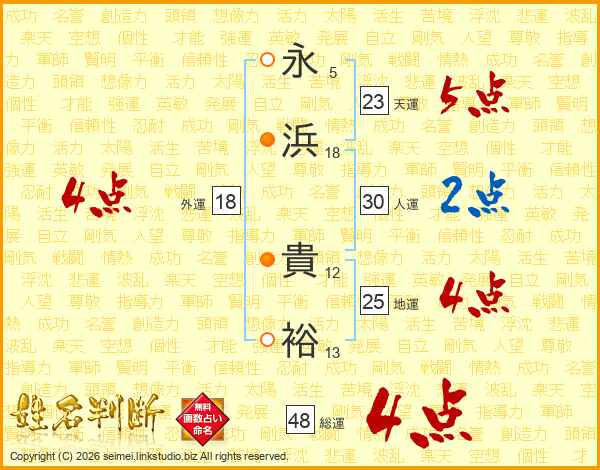 永浜貴裕さんの総運は48画の4点!