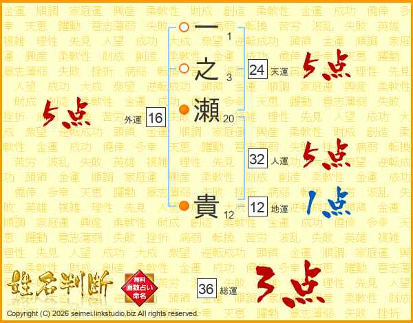 一(1画)之(3画)瀬(20画) 貴(12画)