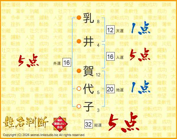 乳井賀代子さんの総運は32画の5点!